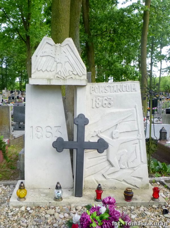 Znajduje się na cmentarzu parafialnym, na północny-zachód od kaplicy cmentarnej (widoczna jest z alejki biegnącej wzdłuż muru przy ulicy).