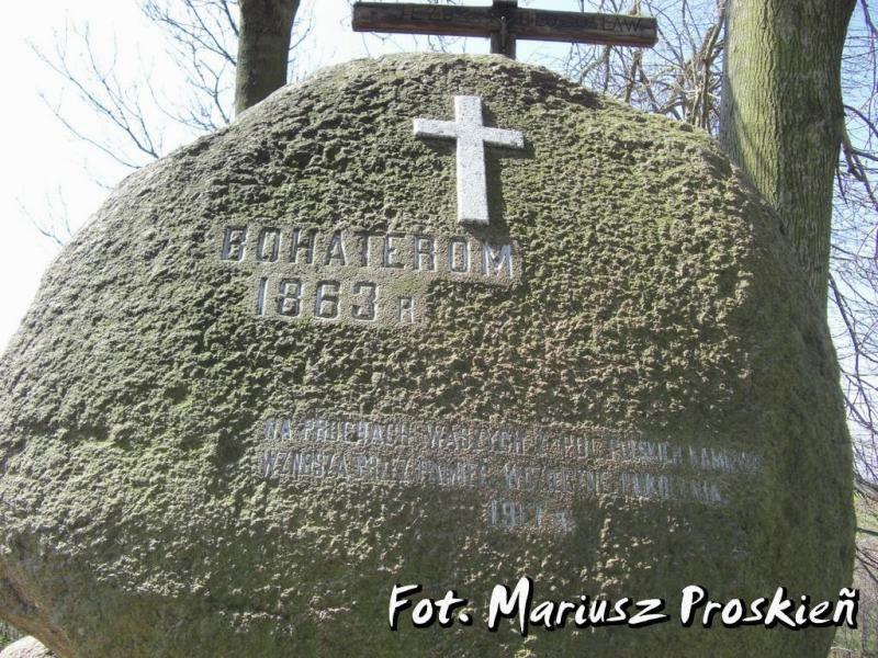"BOHATEROM 1863 R. •• NA PROCHACH WASZYCH Z PÓL POLSKICH KAMIENIA • WZNOSZĄ PRZEZ PAMIĘĆ WDZIĘCZNE POKOLENIA • 1917 R."