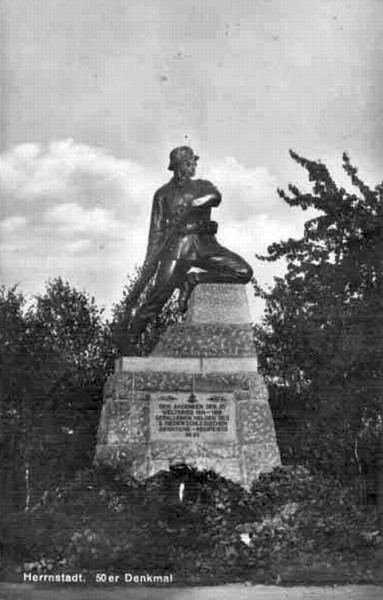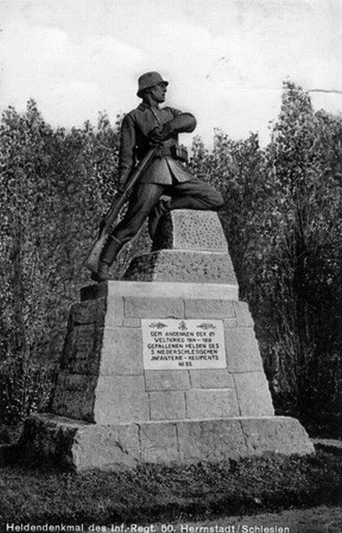 Poświęcony pamięci 50. (3. dolnośląskiego) pułku piechoty (3. Niederschlesisches Infanterie-Regiment Nr. 50). Odsłonięty 4 września 1927 r. Inskrypcja:
