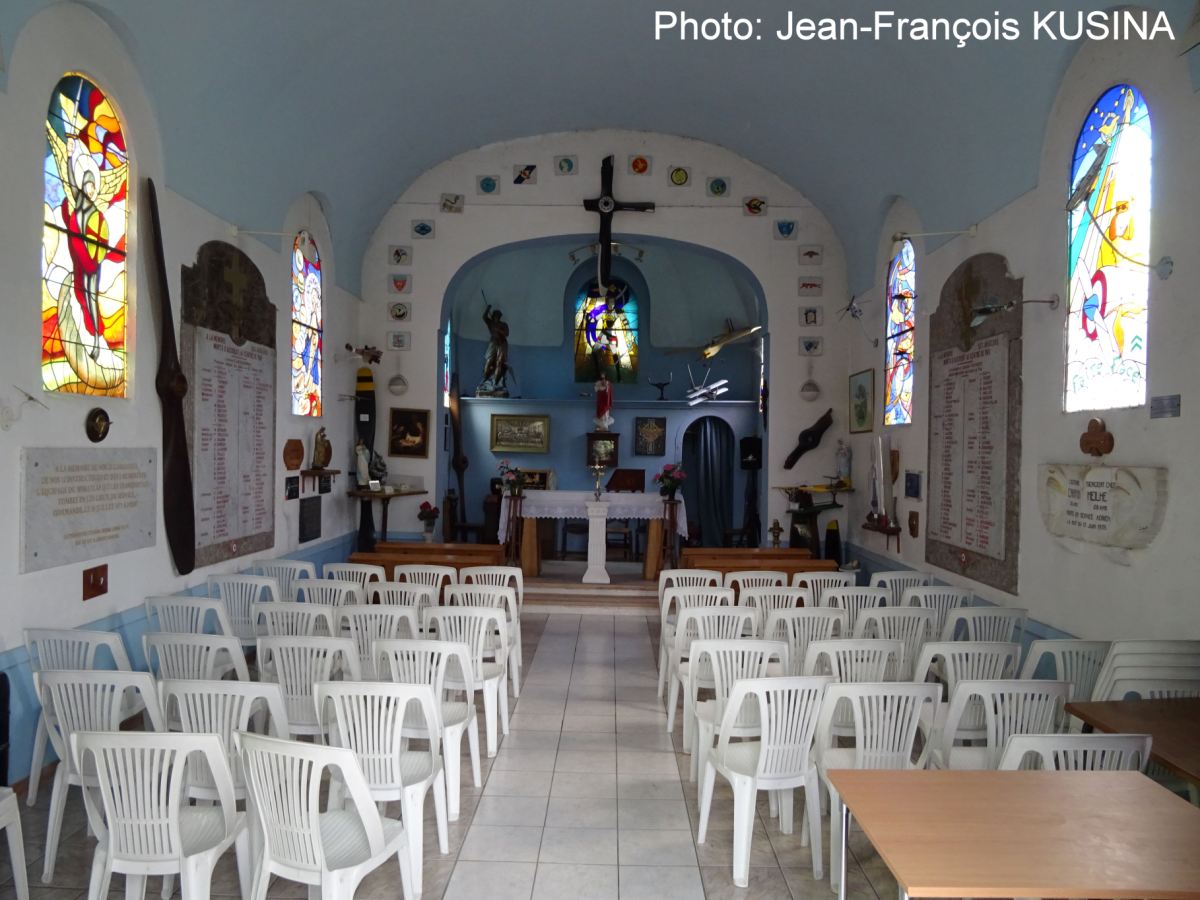 Wewnątrz kaplicy znajduje się wiele tablic upamiętniających instruktorów i uczniów, którzy zginęli śmiercią lotnika podczas szkolenia w Centrum Lotnictwa w Pau.