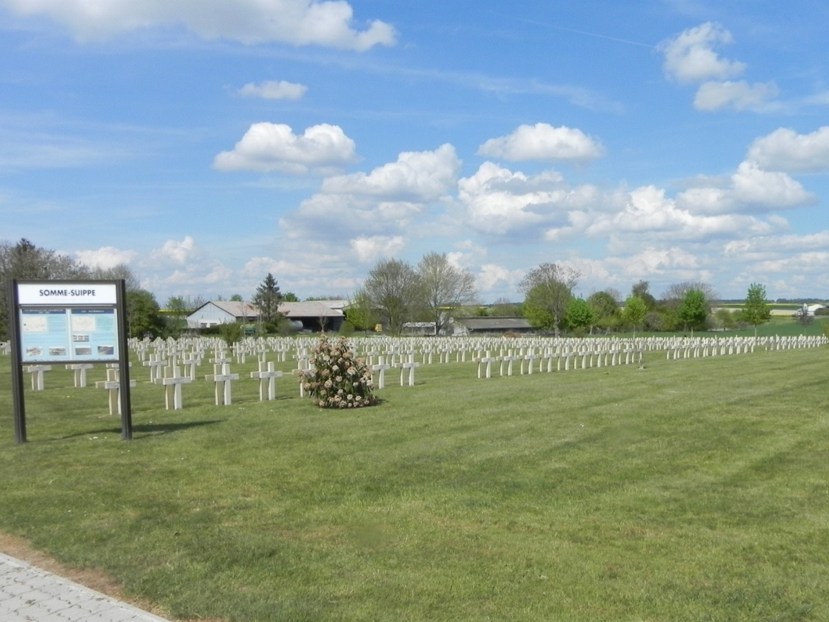 Cmentarz wojskowy powstał w grudniu 1914 roku, a Nécropole Nationale de Somme-Suippe została urządzona w latach 1919-1924. Przeniesiono tu wtedy szczątki poległych z kilku prowizorycznych cmentarzy wojennych. Ogółem pogrzebano tu 4950 żołnierzy francuskich poległych podczas I wojny światowej. Są też groby 12 żołnierzy francuskich z II wojny światowej.