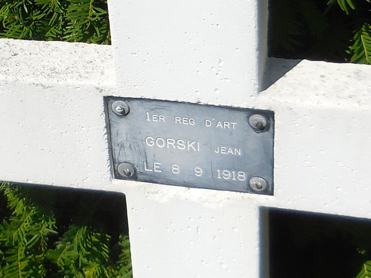 Hamerski Franciszek [Amerski François], sold. 2 cl. † 25.06.1920 Lechtanski Jakob, 3eme Chas. Polonais † 04.02.1920 Jankowski Józef [Joseph] † 30.08.1919 Buczyński Jan [Boutzinski Jean], 1er Reg. Chasseurs † 20.11.1918 Deląg Stanisław [Delany Stanislas], 1er Rég. d’Art. † 27.10.1918 Hajdukiewicz Władysław [Hadjukiewicy Ladislas], 1er Rég. d’Art. † 11.09.1918 Grygier Ignacy (vel Górski Jan / Gorski Jean), 1er Rég. d’Art. † 08.09.1918 Ostrowski Jan [Vostrousky Jean], 1er Rég. d’Art. † 16.10.1918 « SPOCZYWA Tudaj » - prawdopodobnie : Olkowski Władysław, 1er Rég. d’Art. † 17.10.1918