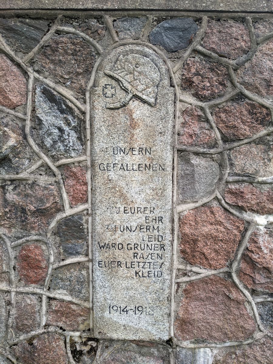 Die Zahlstelle Memel des Zentral verbande der Zimmerer Betrauert den Verlust der Mitglieder John. Blumberg Paul Bronatzky Wilh. Fornacon Alfr. Nusswald Richard Schmidt Otto Schlasche Gust. Woischwill Rich. Schröder John. Weber Ernst Koslowsky Gustav Bajohr Wilh. Hermann 1914 - 1918 ------------------------------------ Unsern gefallenen zu eurer ehr zu unserm leid ward grüner razen euer letztez kleid 1914 - 1918 ------------------------------------ Von den maurern Memels Fielen im Weltkriege Joh. Albuschies Fried. Basel Wilh. Behrend Robert Doblies Rich. Frischmann Erich Guschausky John. Go??a Gust. Cestroy Fritz Hähn William Haase Georg Hermann Arth. Pfeiffer Fritz Romcik Karl Schmidt Max Schmidt Rich. Salomon Otto Schwage?? Herm. Trawinski Heinr. ???witz Henry Missner 1914 - 1918 ------------------------------------ Vom Lehrer - seminar fielen Aus Kl. III Adolf Breuer Albert Grigat Martin Keil Max Klimkus Wilhelm Kybelka Kurt Leppert Bruno Müller Georg Sinnhofer Präp - kl. I Paul Falk Erich Krohnke Michel Mikloweit Heinrich Lokies Paul Potschka Paul Tobien Präp - kl. II Herbert Krebs Benno Urbigkeit 1914 - 1918