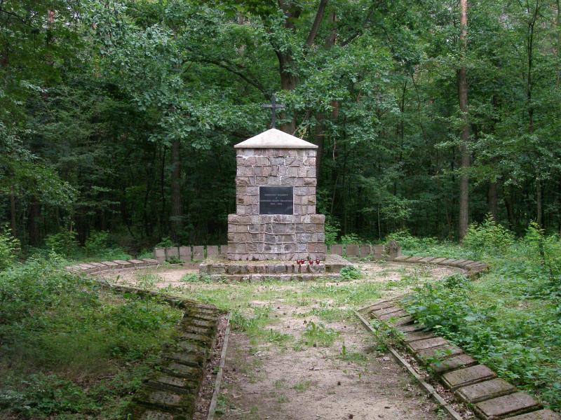 Spoczywa tu bliżej nieustalona liczba żołnierzy armii niemieckiej i rosyjskiej. Stan zachowania zły, mogiły zasypane, pierwotny układ zatarty. Zachowane stele w większości ułożone wzdłuż alejki prowadzącej do pomnika (pierwotnie były ułożone rzędami, prostopadle do alei, po obu jej stronach). Odnowiony w 2001 roku staraniem Urzędu Gminy Brzeziny, Dyrekcji Parku Krajobrazowego Wzniesień Łódzkich oraz Nadleśnictwa Brzeziny. Uporządkowany w 2007 roku przez Stowarzyszenie Eksploracyjno-Historyczne "Grupa Łódź". Wówczas zostały odsłonięte trzy rzędy mogił, na prawo od alejki, od strony drogi gruntowej.