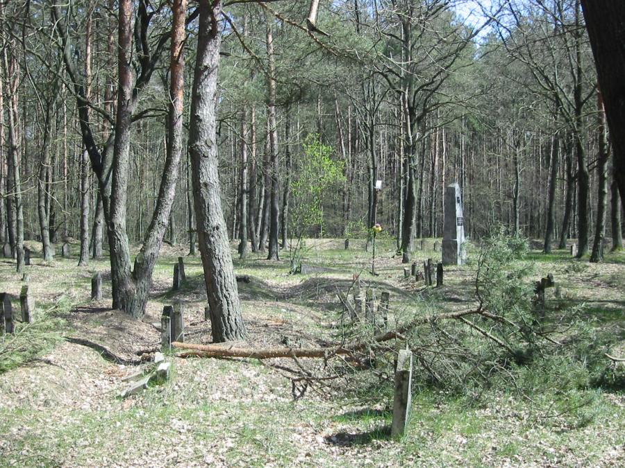 Zlokalizowany w lesie, na północny-zachód od miejscowości, po prawej stronie leśnego duktu. Na planie nieregularnego wieloboku, otoczony wysokim wałem ziemnym. Wejście od południowej strony. Pochowano tu 654 żołnierzy z 9 armii niemieckiej generała Augusta von Mackensen: