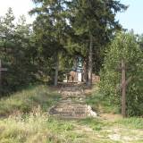 "Hier schlafen im Tode vereint 83 deutsche u. russische • Krieger und schauen von der Höhe • des Schlachtfeldes herab auf die • Stätte an der sie in den heissen • Angriff Kämpfen 1915 ihre • Soldatentreue mit dem • Tode besiegelt haben •• Kameradenhände schufen ihnen • diese gemeinsame letzte • Rühestätte".