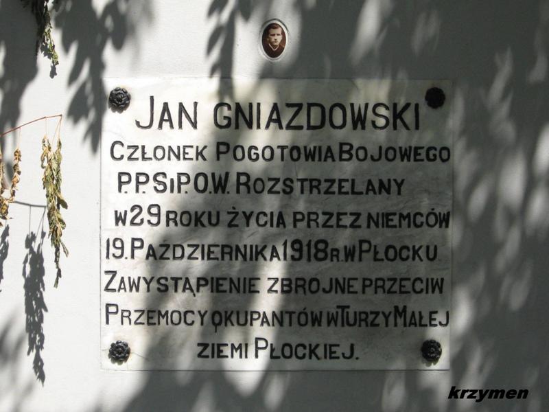 Jan Gniazdowski, członek Pogotowia Bojowego PPS, należał do Polskiej Organizacji Wojskowej od 1915 r. Aresztowany przez Niemców i rozstrzelany w Płocku. Pośmiertnie odznaczony Krzyżem Niepodległości z Mieczami i Krzyżem POW.