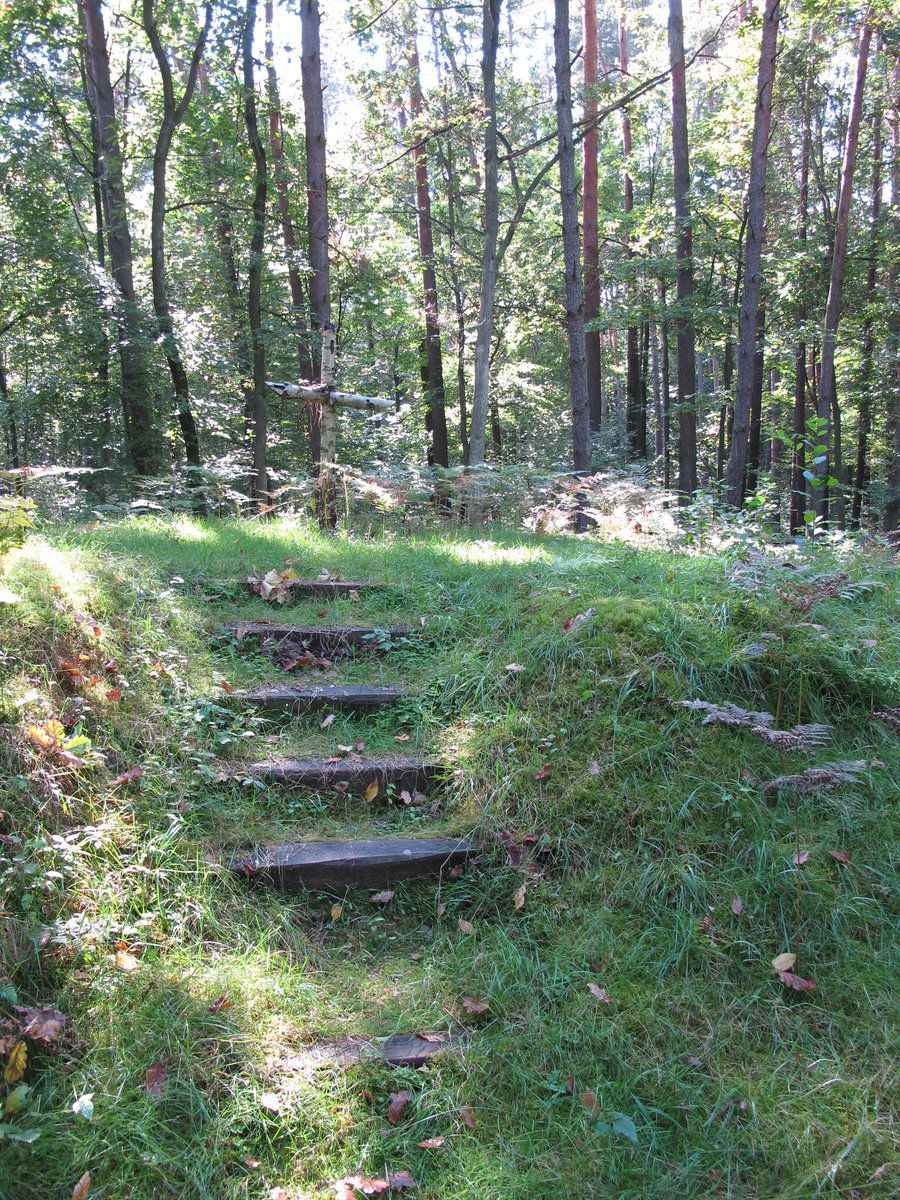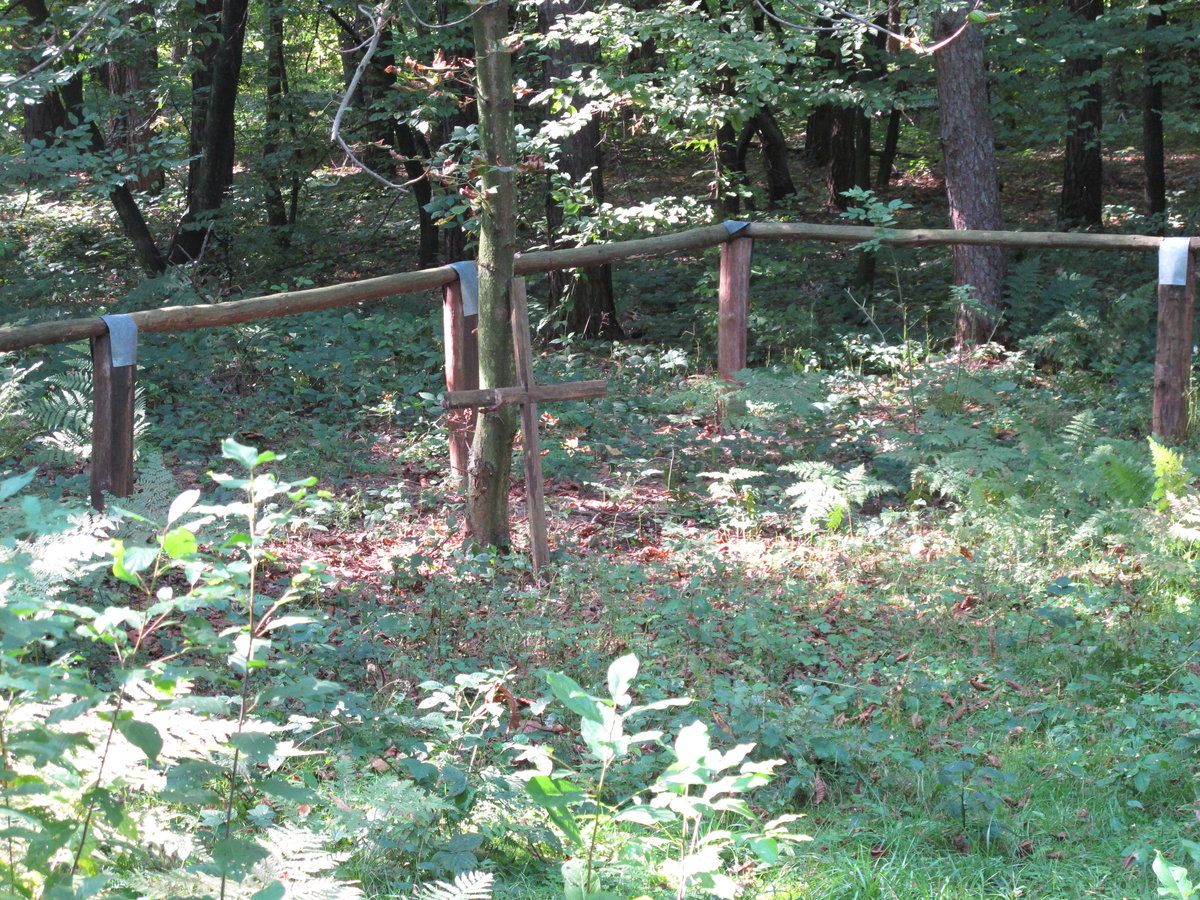 Znajduje się ok 200-300 m od zabudowań wsi, przy leśnej drodze. Na szczycie kopca, na który prowadzą schody, umieszczono krzyż.