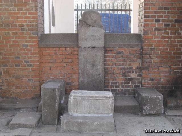 Znajduje się na cmentarzu ewangelicko-augsburskim zlokalizowanym przy skrzyżowaniu ul. Wasilkowskiego i Szosy do Zielonej. Cmentarz powstał najprawdopodobniej w 1885 r., a w okresie I wojny światowej założono tu kwaterę żołnierzy niemieckich. Do końca 1915 r. zarejestrowano 181 niemieckich pochówków wojskowych. W 1916 r. zbudowano mauzoleum, w którym postawiono granitowy postument zwieńczony żołnierskim hełmem. Na postumencie umieszczono napis: