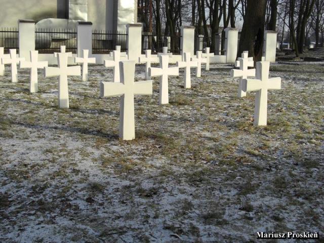 Po prawej stronie głównej alei grzebano żołnierzy niemieckich, po lewej zaś stronie żołnierzy armii rosyjskiej. Groby rozmieszczano w rzędach po 15 grobów w kwaterze niemieckiej i po 10 grobów w kwaterze rosyjskiej. Na większości niemieckich mogił stały krzyże z danymi pochowanych żołnierzy. W okresie okupacji niemieckiej pochowano ogółem około 650 żołnierzy, w tym 375 żołnierzy armii niemieckiej i 280 rosyjskiej.