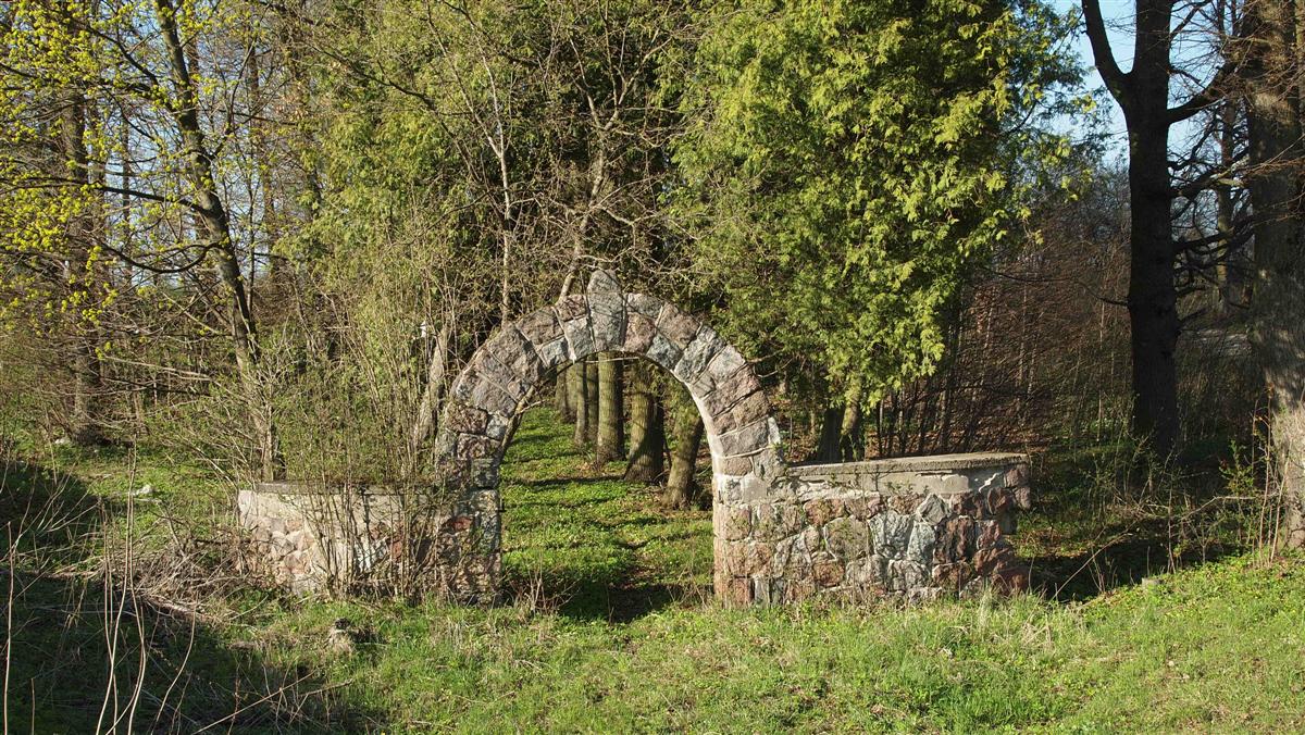 Zachowały się szczątki jednej z tablic, z inskrypcją: "Se… …blaucht Fürst • Richard Emil zu Dohna Schlobitten • * 8.10.1872 • † 18.11.1918".