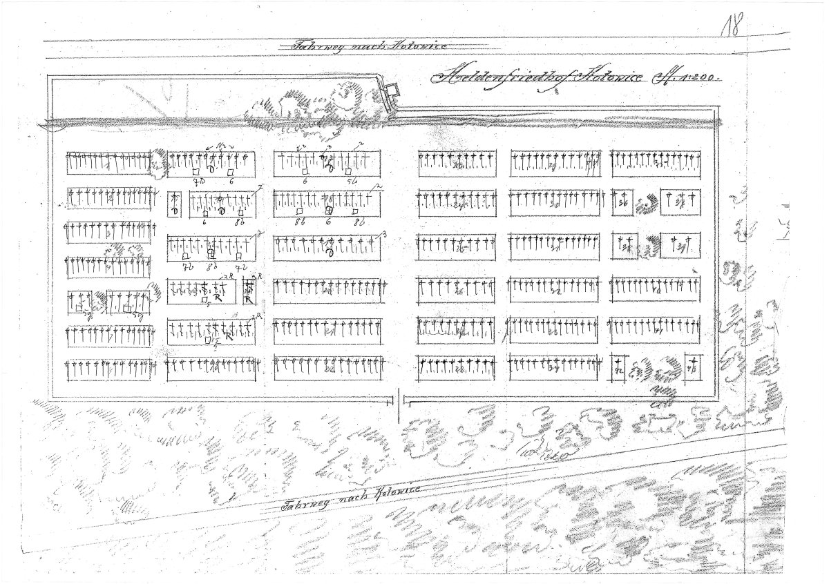 Usytuowany po wschodniej stronie drogi z Kotowic do Góry Włodawskiej, niedaleko magistrali kolejowej. Od strony południowej graniczy z współczesnym cmentarzem rzymsko-katolickim. Założony w 1914r, na planie prostokąta. Pierwotnie spoczywało tu 70 żołnierzy armii niemieckiej, 423 austro-węgierskiej i 57 rosyjskiej. W latach 30-tych XX wieku powiększany w wyniku komasacji mogił m.in. z likwidowanych obiektów w Łutowcu, Ludwinowie (pojedynczy kamienny krzyż), Jaworzniku, Kolonii Hucisko, Przewodziszowic (stele) i Morska (kamienny pomnik).