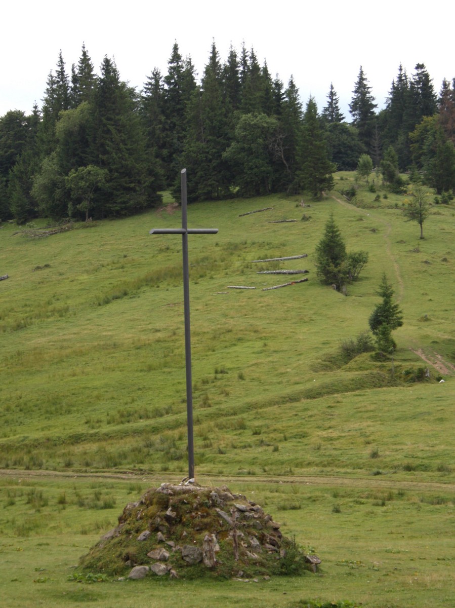 Drewniany krzyż na Przełęczy Rogodze Wielkie (obecnie Przełęcz Legionów), został postawiony przez żołnierzy 3 Pułku Piechoty Legionów, którzy przez przełęcz przemieszczali się do doliny Bystrzycy (po zbudowanej przez siebie tzw. Drodze Legionów). Na drewnianej tablicy legionista Adam Szania wyrył bagnetem swój wiersz, który prawdopodobnie miał następujące brzmienie: