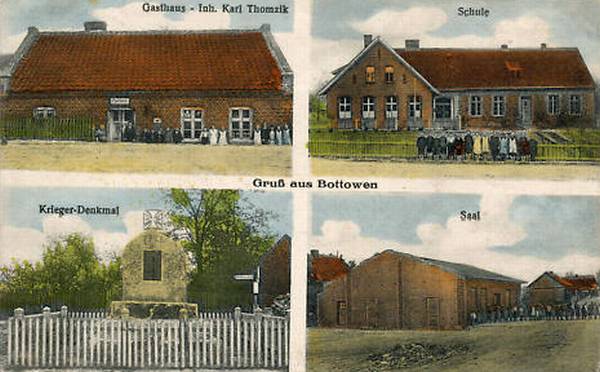 Aus der Gemeinde Bottowen starben im Weltkrieg 1914-18 den Heldentod Fritz Piechottka, † 18.8.1914 Joh. Rosmannek, † 9.9.1914 Gus. Krause, † 19.11.1914 Fried. Pfeiffer, † 5.12.1914 Joh. Kruck, † 22.3.1915 Bert. Schlebrowski, † 12.4.1915 Emil Posdziech, † 7.6.1915 Aug. Schweidler, † 24.7.1915 Gust. Fiedrich, † 11.8.1915 Gottl. Mlodzian, † 16.12.1915 Gottl. Mondry, † 21.3.1916 Jos. Klimmek, † 2.9.1916 Mich. Jelenius, † 25.3.1918 Jos. Barwinski, † 1.4.1918 Herm. Zimek, † 29.4.1918 Paul Roweda, † 1.7.1918 Aug. Krogull, † 28.7.1918