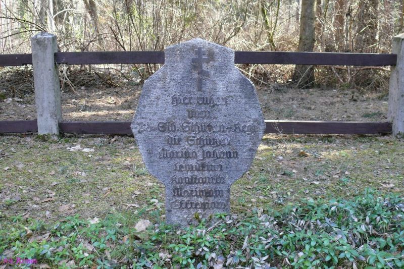 Jest miejscem spoczynku 11 żołnierzy armii niemieckiej (w tym 2 nieznanych) oraz 35 żołnierzy armii rosyjskiej (w tym 29 nieznanych). Na pomniku znajduje się inskrypcja: