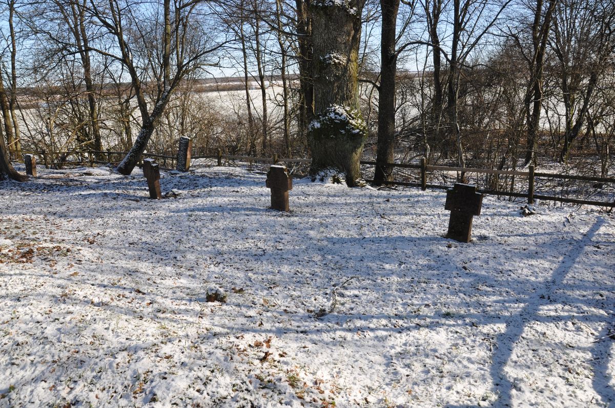 Zlokalizowany na północny wschód od miejscowości. Według opracowania Maxa Dehnena jest miejscem spoczynku 14 żołnierzy armii niemieckiej, w tym 2 nieznanych - wszyscy z Landw. Inf. Regt. 5. Na nagrobkach umieszczono informację o przynależności żołnierzy do Res. Inf. Regt. 342, przy czym nagrobki 7 z 12 żołnierzy, nie zachowały się lub ich nie wykonano. Ponadto z inskrypcji zachowanych na nagrobkach poległych Rosjan wynika, iż na cmentarzu spoczywa 29 nieznanych żołnierzy armii rosyjskiej.