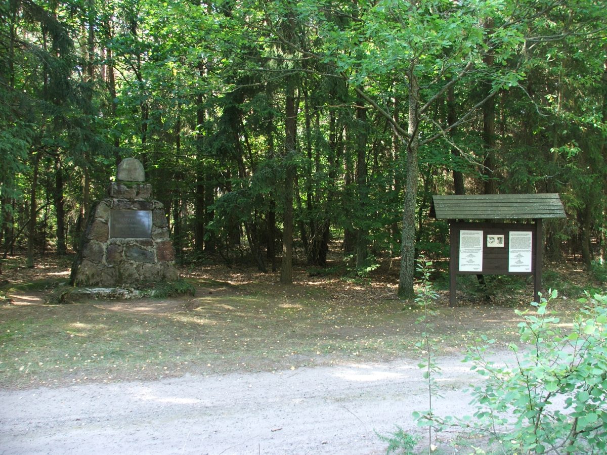 Usytuowany przy drodze leśnej, w pobliżu leśniczówki. Postawiony w miejscu, gdzie zginął i był pochowany gen. Samsonow — dowódca Armii Narew. Jesienią 1916 roku wdowa po generale przy pomocy Czerwonego Krzyża odnalazła zwłoki męża i zabrała, aby pogrzebać je w Rosji (generała pochowano w rodzinnej krypcie, w cerkwi Akimowce koło Chersonia na Krymie). Pomnik został wystawiony staraniem powiatu szczycieńskiego i lasów państwowych, prawdopodobnie w latach 1918-20. Znajduje się na nim napis: