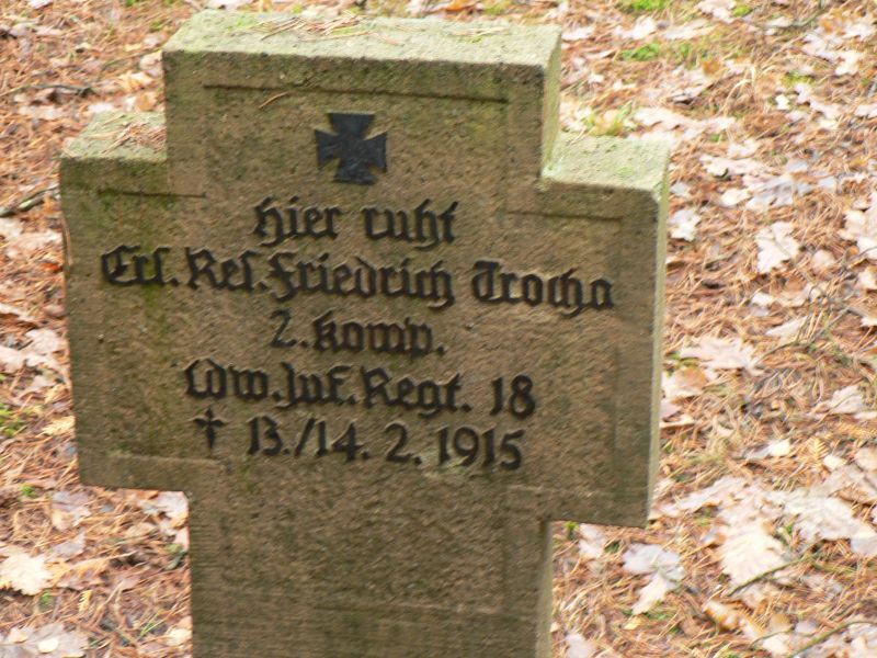 Ldst. Karl Zielonkowski, 6. Komp. Ldst. Batl. Loetzen I, † 11.10.1914 Ers. Res. Friedrich Trocha, 2. Komp. Ldw. Inf. Regt. 18, † 13/14.2.1915 Ers. Res. Wilhelm Iserloth, 8. Komp. Ldw. Inf. Regt. 76, † 13/14.2.1915 Wehrm. Karl Schriewer I, 8. Komp. Ldw. Inf. Regt. 76, † 13/14.2.1915 Krgsfr. Ernst Trechow, 8. Komp. Ldw. Inf. Regt. 76, † 13/14.2.1915