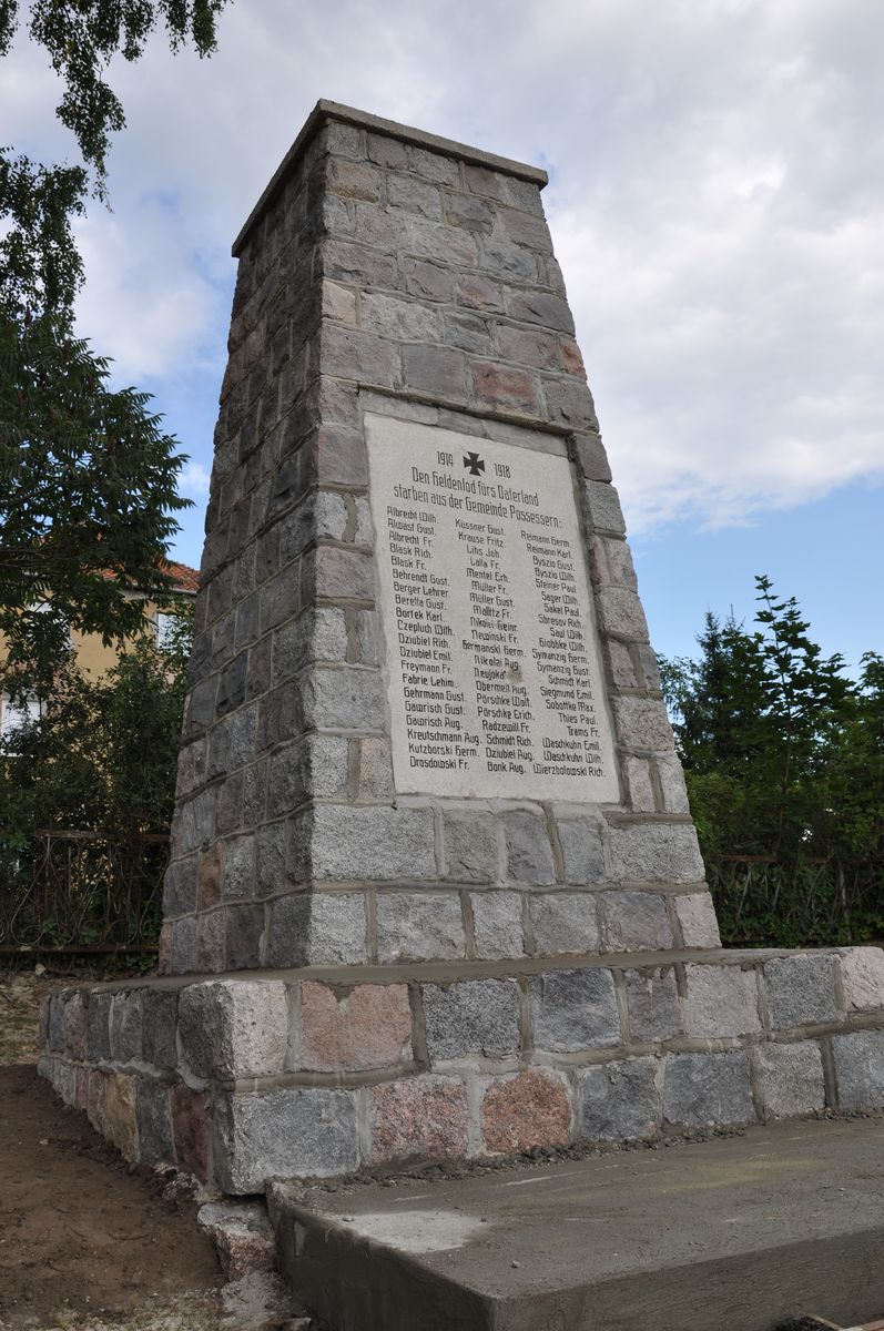 1914 + 1918 Den Heldentod fürs Vaterland starben aus der Gemeinde Possessern Albrecht Wilh.[elm] Alwast Gust.[av] Albrecht Fr. Blask Rich.[ard] Blask Fr. Behrendt Gust.[av] Berger Lehrer [Otto] Berella Gust.[av] Borrek Karl Czepluch Wilh.[elm] Dziubiel Rich.[ard] Dziubiel Emil Freymann Fr. Fabric Lehrer [Alfred] Gehrmann Gust.[av] Gawrisch Gust.[av] Gawrisch Aug.[ust] Kreutschmann Aug.[ust] Kutzborski Herm.[ann] Drosdowski Fr. Küssner Gust.[av] Krause Fritz Lihs Joh. [=Liss] Lalla Fr. Mentel Ehr.[ardt] Müller Fr. Müller Gust.[av] Mallitz Fr. Nikolei Heinr.[ich] Newinski Fr.[itz] Newinski Herm.[ann] Nikolei Aug.[ust] Neujokat Karl Obermeit Aug.[ust] Pörschke Walt.[er] Pörschke Erich Radziwill Fr. Schmidt Rich.[ard] Dziubiel Aug.[ust] Bonk Aug.[ust] Reimann Herm.[ann] Reimann Karl Byszio Gust.[av] Byszio Wilh.[elm] Steiner Paul Sager Wilh.[elm] Sakel Paul Sbresny Rich.[ard] Saul Wilh.[elm] Stobbke Wilh.[elm] Symanzig Herm.[ann] Symanzig Gust.[av] Schmidt Karl Siegmund Emil Sobottka Max Thies Paul Trams Fr. Waschkuhn Emil Waschkuhn Wilh.[elm] Wierzbolowski Rich.[ard]