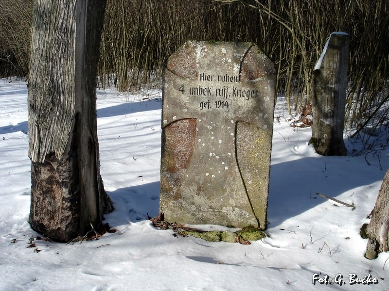Na cmentarzu ewangelickim znajduje się mogiła 4 nieznanych żołnierzy armii rosyjskiej poległych w 1914 roku.