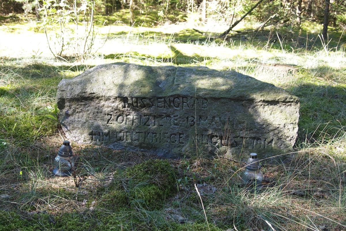 "RUSSENGRAB • 2 OFFIZIERE 13 MANN • † IM WELTKRIEGE AUGUST 1914".