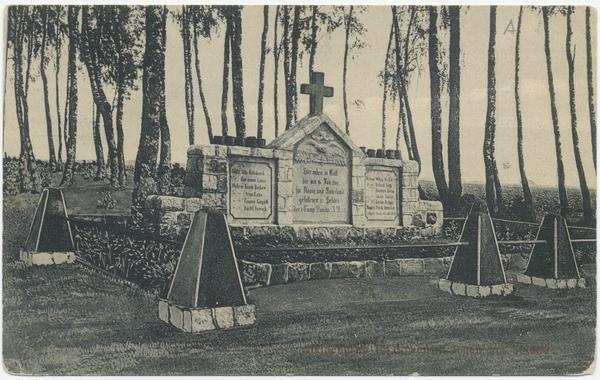 "Hier ruhen in Gott • die am 16 Nov 1914 • für König und Vaterland • gefallenen 13 Helden • der 1 Komp. Landw. J. R. 21".1)