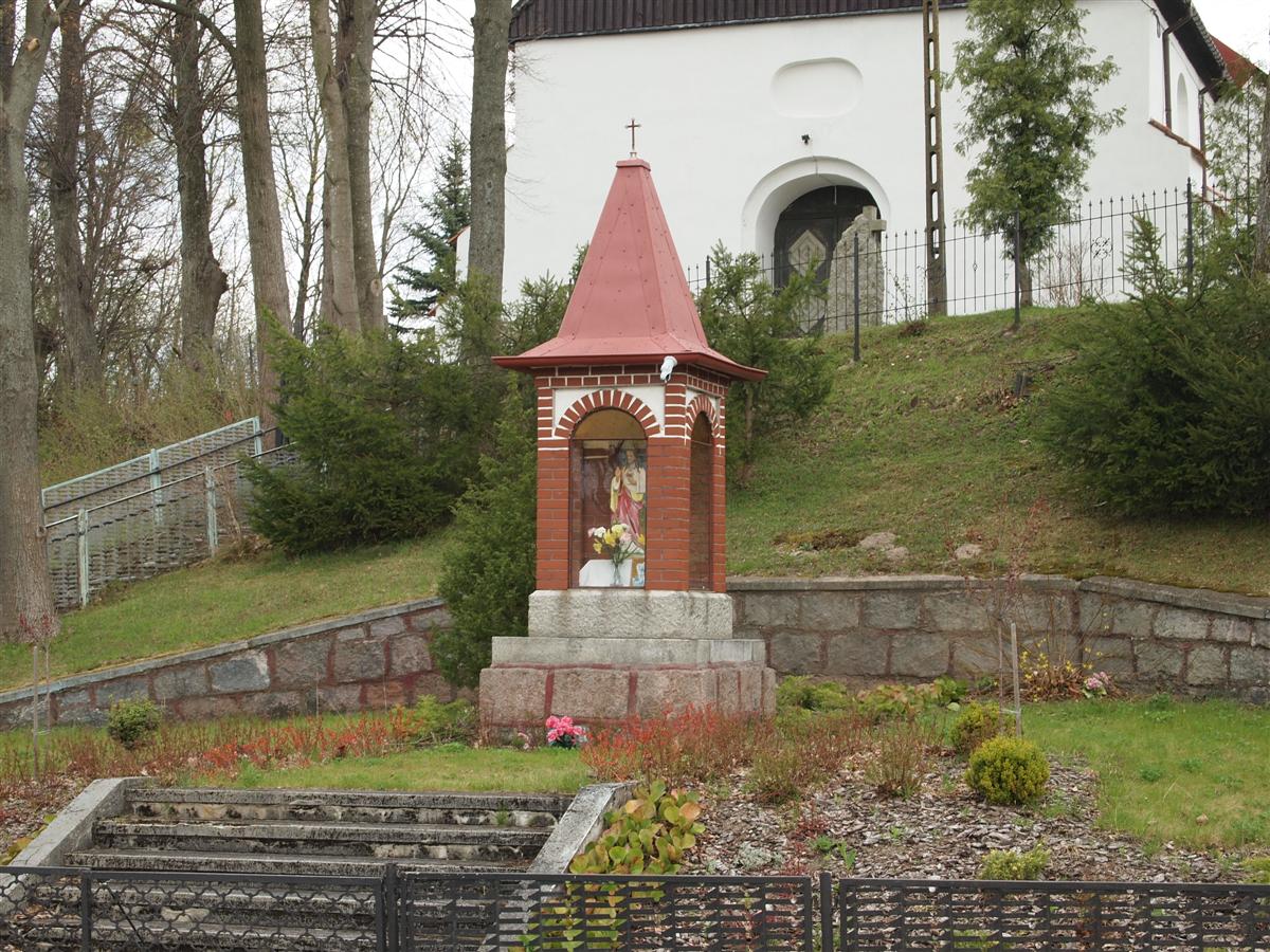 Odsłonięty w 1926 roku, obecnie przerobiony na kapliczkę znajdującą się przed kościołem. Po prawej stronie pomnika ustwiono współcześnie dwie, marmurowe tablice. Znajduje się na nich lista poległych i zaginionych podczas IWŚ. Upamiętniono w ten sposób mieszkańców wsi: Skowrony (Schmauch), Nawty (Nauten), Godkowo (Göttchendorf), Nowy Cieszyn (Neu Teschen) oraz Stary Cieszyn (Alt Teschen).