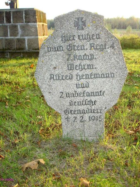 Leutn. d. Res. Mathes Achenbach, 7. Komp. Gren. Regt. 4, † 7.2.1915 Untffz. Karl Masuch, 5. Komp. Inf. Regt. 44, † 7.2.1915 Untffz. [Friedrich] Rincke [Steinke], [6. Komp.] Inf. Regt. 44, [† 7.2.1915] Gefr. [Kurt] Seeger, [6. Komp.] Inf. Regt. 44, [† 7.2.1915] Jäger Paul Rudolf Schaak, Jäger Regt. z. Pfd. 10, † 8.2.1915 Wehrm. [Gren] Alfred Henkmann, 7. Komp. Gren. Regt. 4, † 7.2.1915 Wehrm. Paul L??? [Löper], Gren. Regt. 4, † 9.2.??? [1915] Musk. Paul Kopelka, 7. Komp. Inf. Regt. 44, † 7.2.1915 Musk. Hellmuth Liehn, 6. Komp. Inf. Regt. 44, † 7.2.1915 Musk. Fritz Kairies, 6. Komp. Inf. Regt. 44, † 7.2.1915 Musk. Karl Haupt, 6. Komp. Inf. Regt. 44, † 7.2.1915 Ers. Res. Hermann Ludwig Grohnert, 6. Komp. Inf. Regt. 44, † 7.2.1915