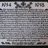 1914 † 1918 Für Heimat und Vaterland gaben ihr leben Emil Alexy Aug. Buberreck Herm. Balzer Fritz Bannasch Otto Bannasch Johann Bernecker Karl Belusa August Buberrek Gustav Buberrek August Czylmik Fritz Dombrowski August Dwojakowski Friedrich Dwojaowski Ludwig Dybus Franz Domass Ludwig Dybus Adolf Dudda Fritz Dusay Max Dusay Paul Dzikonski Fritz Guthold Franz Härich Otto Himwert Gust. Koss Friedr. Konopka Gust. Kowalzik Franz Knoch Gust. Knoch Joh. Krupinski Karl Krusko Franz Kütza Ernst Kulessa Hermann Kullack Fritz Kupczyk August Lapschiess August Lyss Otto Lyss Richard Lyss Gust. Nientkewitz Jak. Nowak Aug. Ollech Franz Polatzek Paul Polatzek Ad. Radzio Fritz Reuter Fr. Rieck Fr. Romanowski Gust. Romanowski Max Romanowski Julius Schütz Ludwig Schütz Gustav Siegmund Otto Schwarz Paul Schwarz Friedr. Sawitzki Albert Struwe Herm. Sych Adam Tertel Franz Tertel Herm. Tertel Friedr. Trochim Lud. Ulkowski Gustav Well Ernst Weidekamm Friedr. Weidekamm Karl Wieczorek Friedrich Wrobel Otto Zander Vergesst es nicht!