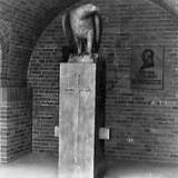 Zlokalizowany przy wieży wejściowej, od strony wieży nr 8. Autorem wykonanej w dębowym drewnie rzeźby był Karl Sylla.