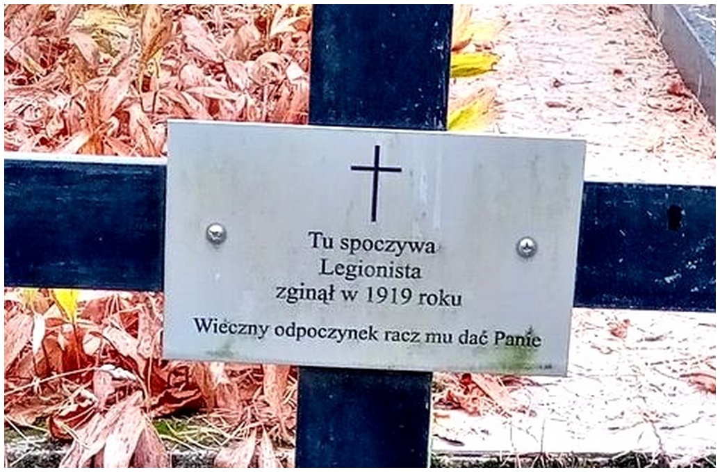 ,,TU SPOCZYWA LEGIONISTA / ZGINĄŁ W 1919 ROKU / WIECZNY ODPOCZYNEK RACZ MU DAĆ PANIE"