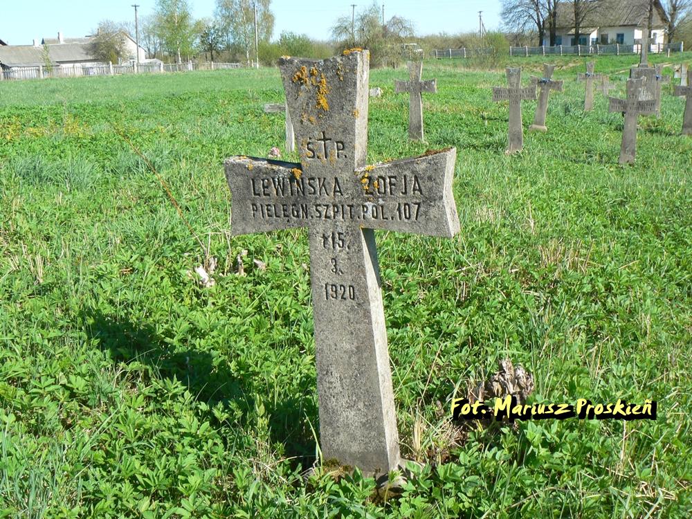 Badziński [Badyński] Walenty, szer., 2 komp. 155 pp, pol. 08.06.1920 Bugaj Bolesław, uł., 11 p.uł. † 16.05.1920, szp. pol. 107 Czechowski [Ciechowski] Leon, st.szer., 1/167 pp, pol. 13.06.1920 Czerniak Wiktor, szwol., 1 p.szwol., zm.r. 09.03.1920 Czyżewski Władysław, kpr. WP † 1920 Gajewski Nikodem, szer., 3 kk 155 pp † 13.06.1920 Gajewski T., żołnierz, 155 pp † 1920 Główka Andrzej, st.uł., 11 p.uł. † 26.02.1920 Gołębiowski Maurycy, uł., 4 szw. 11 p.uł., pol. 26.02.1920 Górecki Stanisław, st.uł., szt. I Bryg. Jazdy † 19.02.1920 Jałocha Władysław, szer., 167 pp, pol. 13.06.1920 Jarzębski Jan, żołnierz, 4 kmp 155 pp, pol. 08.06.1920 Kapuściński Ignacy, szwol., 1 p.szwol. † 03.02.1920, szp. pol. 107 Kędzierski S., szer., 16/155 pp † 20.06.1920 Kieroń Franciszek, szer., 1/167 pp, pol. 16.06.1920 Kohutnicki Jan, uł., 19 p.uł. † 21.04.1920 Kowalczyk Wawrzyniec, szer., szp. pol. 107 † 06.02.1920 Koza Franciszek, szer., 16/155 pp, pol. 20.06.1920 Kozłowski, żołnierz WP † 1920 Kucharski Jan, żołnierz 13 kmp. 155 pp † 18.06.1920 Lewińska Zofia, pielęgniarka, szp. pol 107 † 15.03.1920 Łaszcz Antoni, uł., 4 szw. 13 p.uł., pol. 06.06.1920 Pańczak Stefan, żołn., 15 kmp 155 pp † 20.06.1920 Perski Maksymilian, szer., 155 pp, pol. 08.06.1920 Połomski [Połowski] Andrzej, szer., 155 pp, pol. 08.06.1920 Siwiec Wilhelm, kpr., 1/167 pp, pol. 13.06.1920 Sokołowski Antoni, st.leg., 1 ppleg. † 27.02.1920 Szcześ [Szczeń] Leon, 1/167 pp † 13.06.1920 Szczepaniak Stanisław, szer., 155 pp, pol. 20.06.1920 Szleps [Szłaps] Andrzej, szer., 155 pp, pol. 18.06.1920 Szymański Adolf, żołnierz, 6 k 155 pp † 18.06.1920 Środa Franciszek, żołn. WP † 23.06.1920 Tkoczek Jan [Tkaczek K.], szer., 1/167 pp † 13.06.1920 Tujek Stanisław, szer., 1/167, pol. 13.06.1920 Urbaniak Jan, żolnierz WP † 1920 Woźny [Woźniak] Tomasz, szer., 155 pp, pol. 06.06.1920 Wyszyński Józef, ppor. WP † 1920