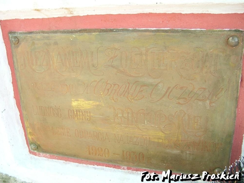 "NIEZNANEMU ŻOŁNIERZOWI • POLEGŁEMU W OBRONIE OJCZYZNY • LUDNOŚĆ GMINY ŁYNTUPSKIEJ • W 10 CIO LECIE ODPARCIA NAJAZDU BOLSZEWIKÓW • 1920 – 1930 R."