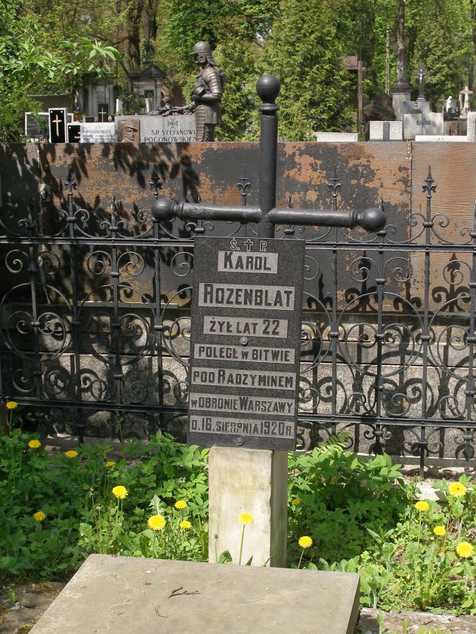 "KAROL ROZENBLAT • ŻYŁ LAT 22 • POLEGŁ W BITWIE • POD RADZYMINEM • W OBRONIE WARSZAWY • D. 16. SIERPNIA 1920 R."