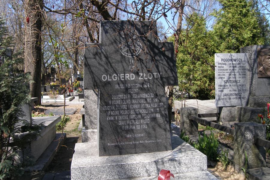"OLGIERD • ZŁOTY • PLUT. W.P. • ŻYŁ LAT 21 • ZM. 19.8.1920 r. • TOBIE, OJCZYZNO".