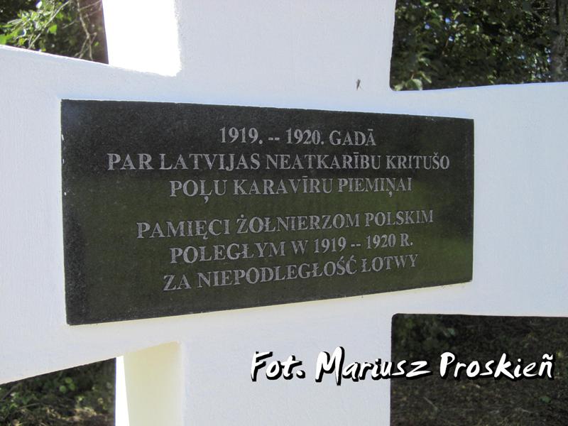 "1919.-1920. GĀDA • PAR LATVIJAS NEATKARīBU KRITUŠO • POĻU KARAVīRU PIEMIŅAI •• PAMIĘCI ŻOŁNIERZOM POLSKIM • POLEGŁYM W 1919-1920 R. • ZA NIEPODLEGŁOŚĆ ŁOTWY".