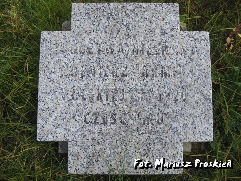 ”TU • SPOCZYWA NIEZNANY • ŻOŁNIERZ ARMII • POLSKIEJ † 1920 • CZEŚĆ MU”.