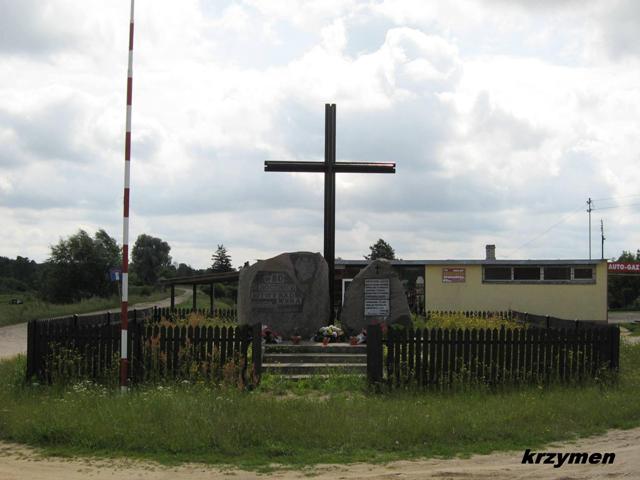 Niedaleko mostu drogowego przez rzekę Wkrę, na placyku przed sklepem, zlokalizowany jest pomnik. Składa się z dwóch głazów i wysokiego metalowego krzyża. Głaz znajdujący się z prawej strony został ustawiony w 1938 r. Umieszczono na nim tablicę z napisem: