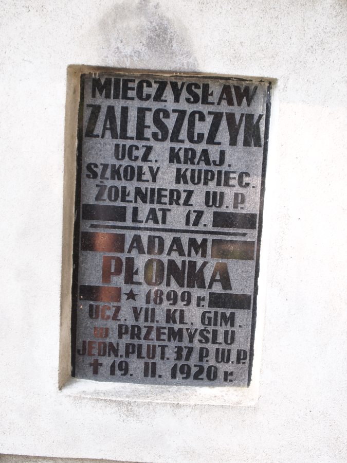 STANISŁAW ARTWIŃSKI, sł:Uniwers. podpor:W.P. lat 24. TADEUSZ DRUKACZ, uczeń VIII kl. żołnierz W.P. lat 17. TADEUSZ KĘDZIERSKI, sł:Uniwers. żołnierz W.P. lat 18. JÓZEF KĘDZIERSKI, uczeń VIII kl. żołnierz W.P. lat 17. WACŁAW MOTYKA, uczeń VIII kl. plutonowy W.P. lat 17. STANISŁAW OSOSTOWICZ, uczeń VII kl. kapral W.P. lat 17. WŁADYSŁAW RYŻ, uczeń VIII kl. żołnierz W.P. lat 19. MARYAN SCHULTZ, uczeń VIII kl. żołnierz W.P. lat 19. MIECZYSŁAW ZALESZCZYK, UCZ. KRAJ. SZKOŁY KUPIEC., ŻOŁNIERZ W.P. lat 17. ADAM PŁONKA, * 1899 r., UCZ. VII. KL. GIM. w PRZEMYŚLU, JEDN. PLUT. 37 P. W.P., † 19.II.1920 r. ALFONS RÓŻYCKI, UCZ. 4. KL. GIM., JEDN. OCHOTN. W.P. lat 18. NIKODEM SOZAŃSKI, ABSOL. SZKOŁY REAL., JEDN. OCHOTN. W.P. lat 23. FERDYNAND NOWAK, UCZ. KRAJ. SZKOŁY KUPIEC. ŻOŁNIERZ W.P. lat 15