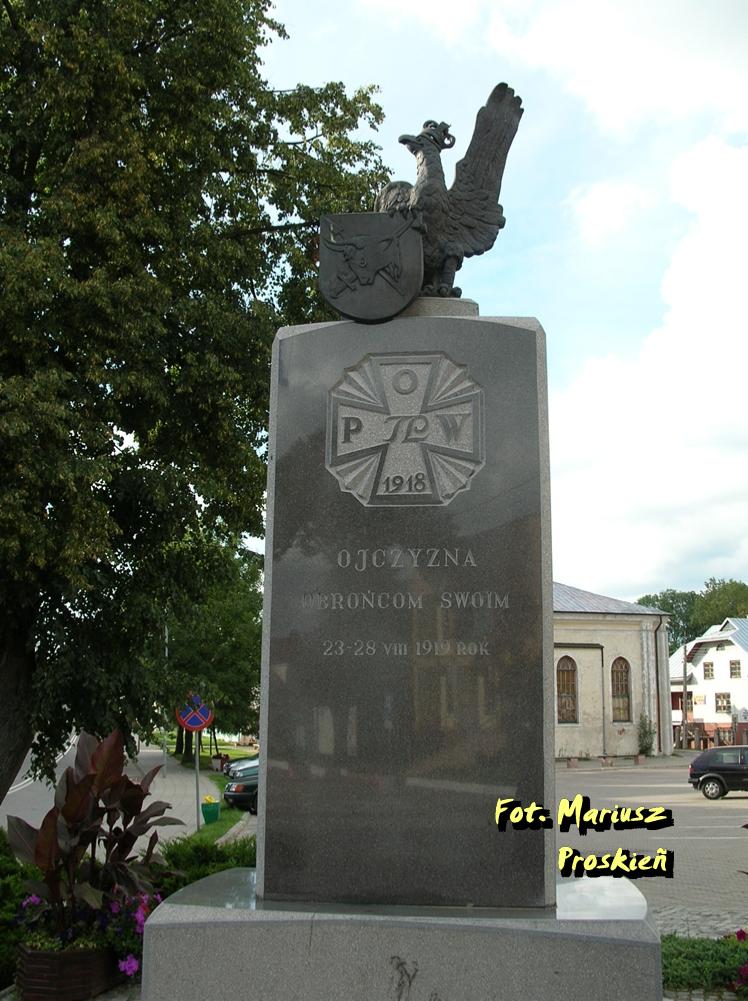 Odsłonięty w centrum Sejn, w 1999 roku, w osiemdziesiątą rocznicę Powstania Sejneńskiego. Na pomniku inskrypcje: