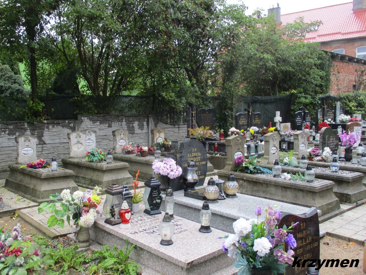 Lista pochowanych sporządzona na podstawie danych spisanych z tabliczek oraz z nieistniejącego już pomnika wzniesionego przez p. Henryka Holwega. W nawiasach kwadratowych numery emaliowanych tabliczek.