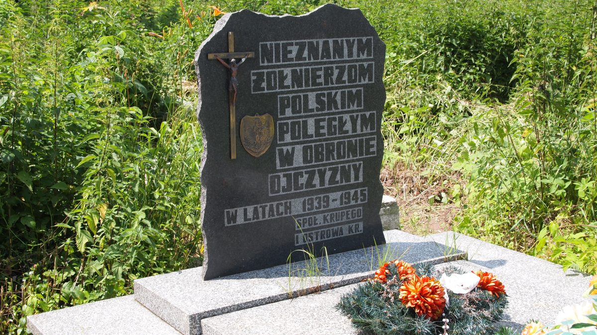 "NIEZNANYM • ŻOŁNIERZOM • POLSKIM • POLEGŁYM • W OBRONIE • OJCZYZNY • W LATACH 1939-1945 •• SPOŁ. KRUPEGO • I OSTROWA KR."