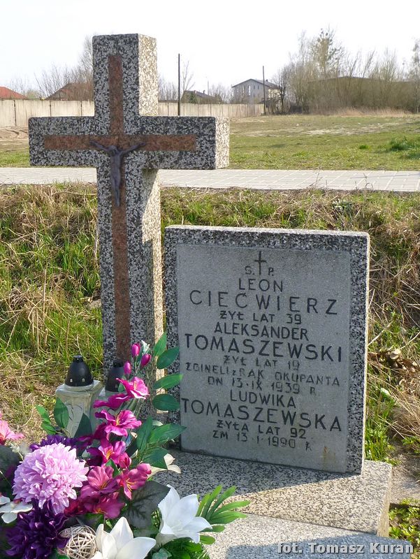 ROMAN SARNECKI, P-PORUCZNIK-W-P, ŻYŁ-LAT-22, POLEGŁ-W-M-WRZEŚNIU 1939r. LEOPOLD OSTOJSKI, UR-1-VIII-1922 R., ZGINĄŁ JAKO OCHOTNIK W OBRONIE OJCZYZNY DN-9-IX-1939 R. STANISŁAW ZIELIŃSKI, ŻYŁ LAT 42, ZG. ŚMIERCIĄ TRAGICZNĄ DN. 10 IX 1939 R. ANNA ORACZ, ŻYŁA-LAT-35 JERZY ORACZ, ŻYŁ-LAT-13, ZGINĘLI ŚMIERCIĄ TRAGI-12-IX-1939 R. LEON CIEĆWIERZ, ŻYŁ LAT 39 ALEKSANDER TOMASZEWSKI, ŻYŁ LAT 19, ZGINĘLI Z RĄK OKUPANTA DN 13-IX-1939 R. STANISŁAW WÓJCIK, ŻYŁ 22 LAT, ZMARŁ DN 13.IX 1939 R