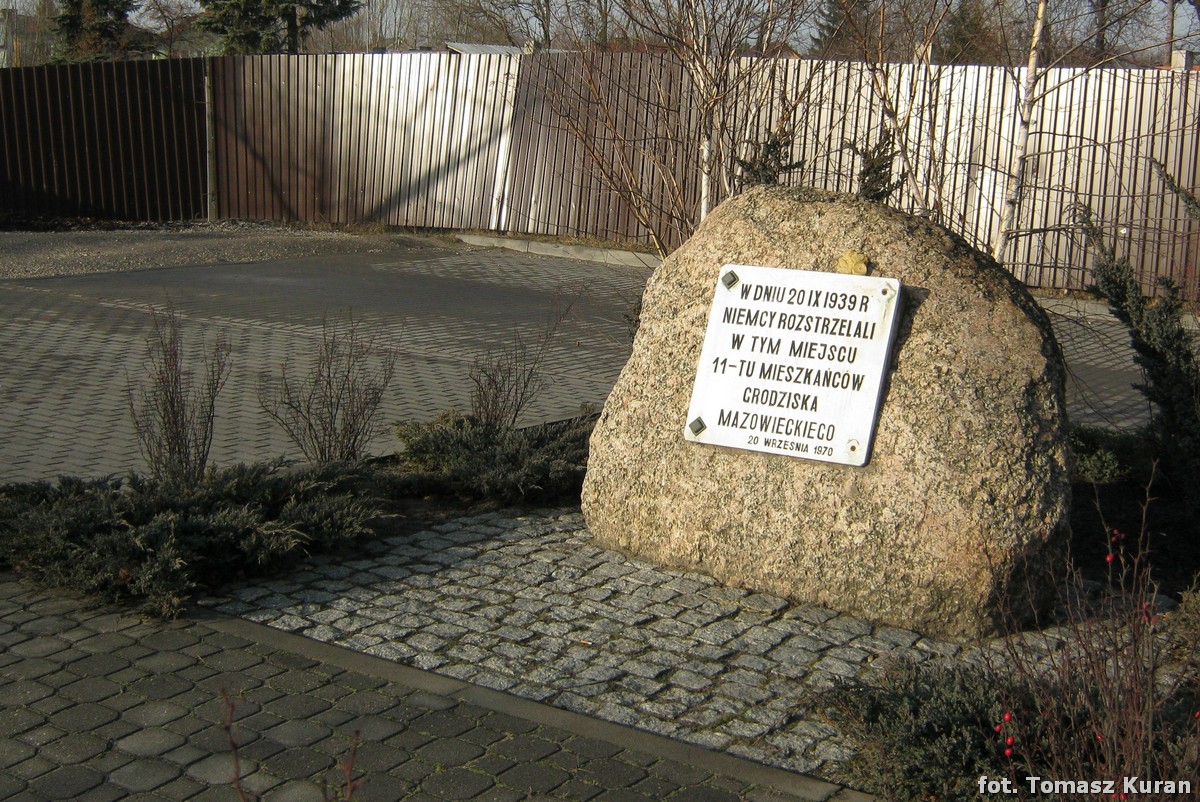 "W DNIU 20 IX 1939 R • NIEMCY ROZSTRZELALI • W TYM MIEJSCU • 11-TU MIESZKAŃCÓW • GRODZISKA • MAZOWIECKIEGO •• 20 WRZEŚNIA 1970".