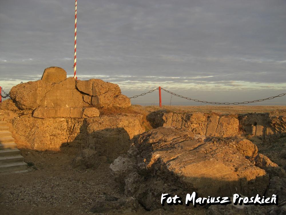 Na tablicy przymocowanej do ruin schronu dowodzenia umieszczono napis: