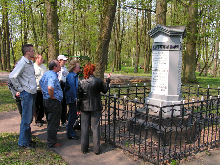 Dieses Denkmal ist erneuert • Durch I.M.Alexander II • Kaiser von Russland • und Wilhelm I • König von Preussen • und die Officiere des St. Petersburger • Grenadier Regiments König • Friedrich Wilhelm III • am 2/14 Juni 1868.